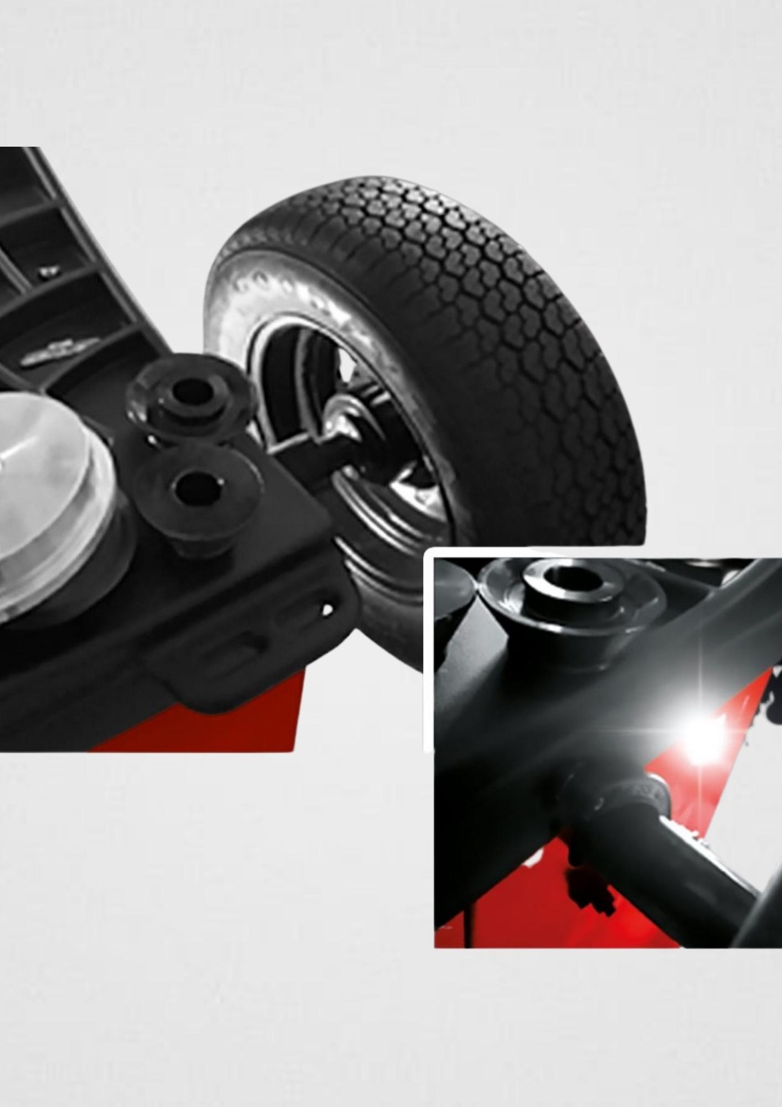 Our Pro/S wheel balancing machine is equipped with an LCD screen, LED lighting, dual lasers, micro switch sonar, automatic measurement technology, and a powerful motor. These features enable users to easily monitor operations. Multi-functional symbols and keypads assist operators in performing tasks quickly and accurately. Safety measures such as automatic pneumatic braking in unbalanced positions are present in our Pro/S wheel balancing machine. Furthermore, the display of unbalanced points on the inner and outer surfaces using laser technology makes the process more precise.